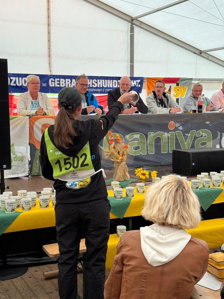 Der 1. Platz geht an unsere Cornelia Göppner mit ihrer Nova von der Rußhütte mit 99/97/97 Gesamt 293 Pkt. „Vorzüglich“